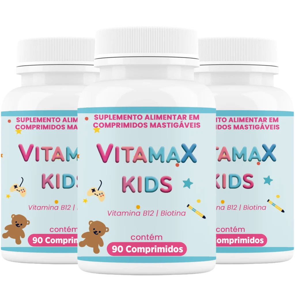 Vitamina B12 para Energia e Desenvolvimento Cognitivo: Ajuda na formação de glóbulos vermelhos, combate a fadiga e promove o bom funcionamento do sistema nervoso, contribuindo para o aprendizado e a concentração das crianças.